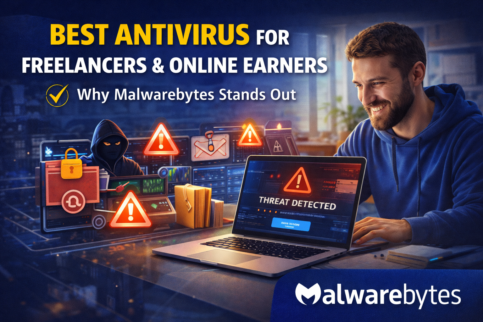 Malwarebytes is the best antivirus for freelancers and online earners in 2026—combining strong real-time protection, advanced malware detection, ransomware defense, and lightweight performance.