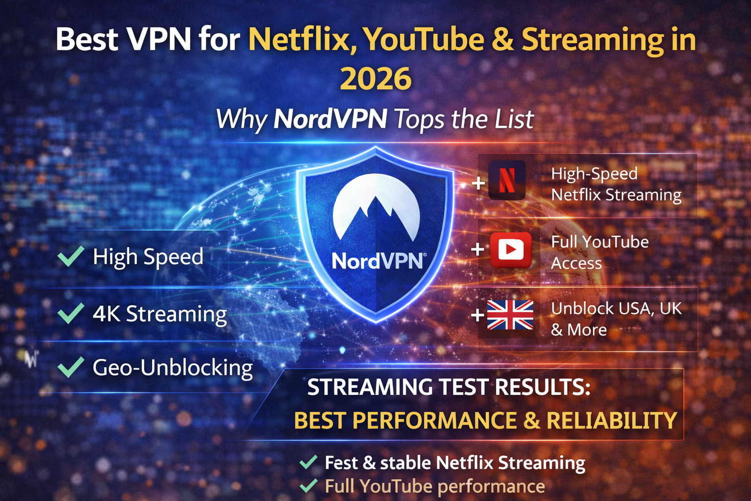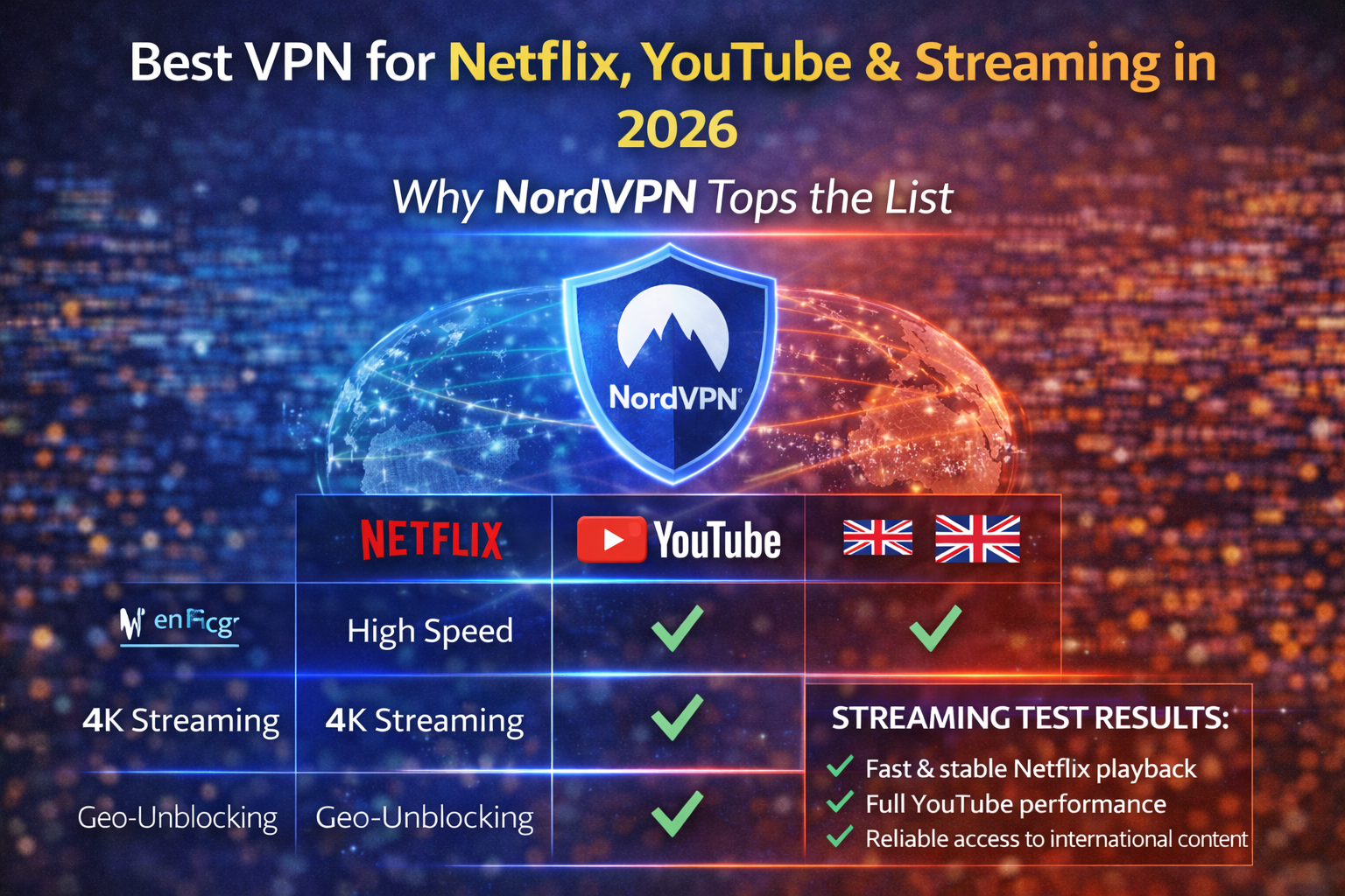 For users searching for the best VPN for Netflix and reliable streaming access in 2026, NordVPN remains a strong contender. It combines fast speeds, consistent geo-block bypass performance, and broad platform compatibility.