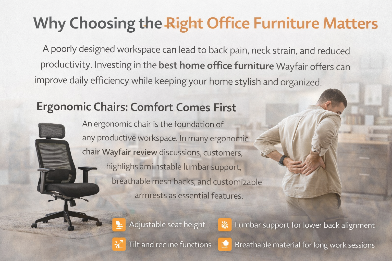 A poorly designed workspace can lead to back pain, neck strain, and reduced productivity. Investing in the best home office furniture Wayfair offers can improve daily efficiency while keeping your home stylish and organized.