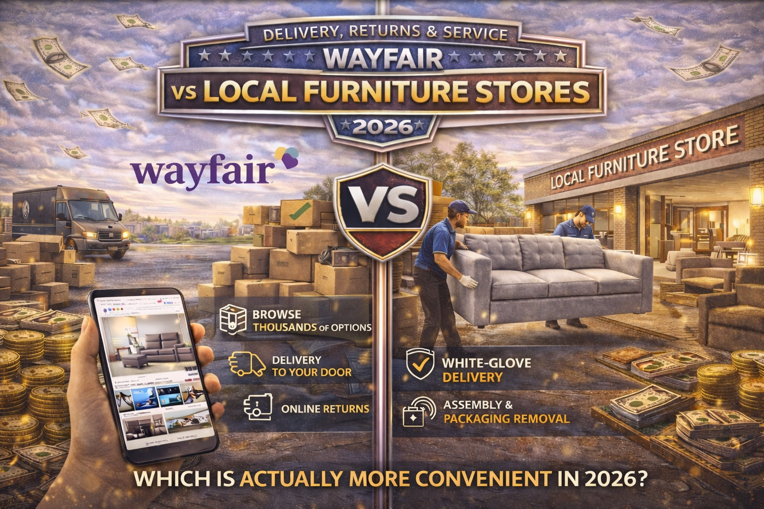 If you prioritize the lowest upfront price and variety, Wayfair often wins. If you value hands-on inspection, bundled services, and fewer return risks, local furniture stores may offer better overall value.