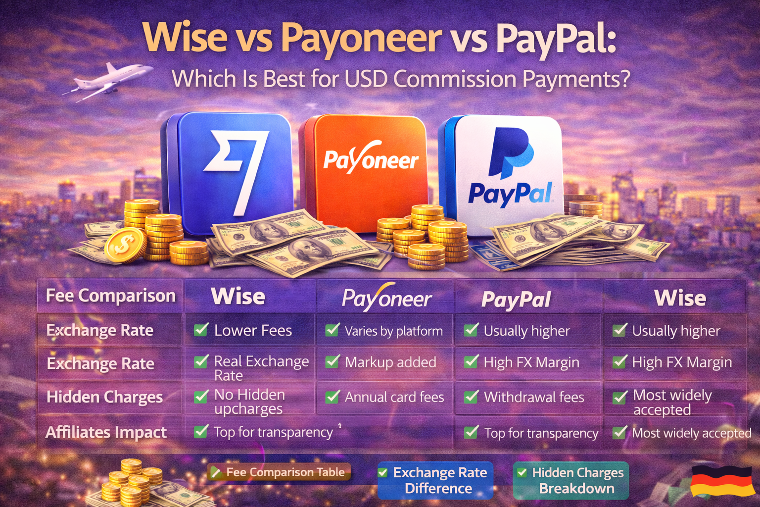 When comparing Wise vs Payoneer vs PayPal, the goal is simple: keep more of your USD commission.